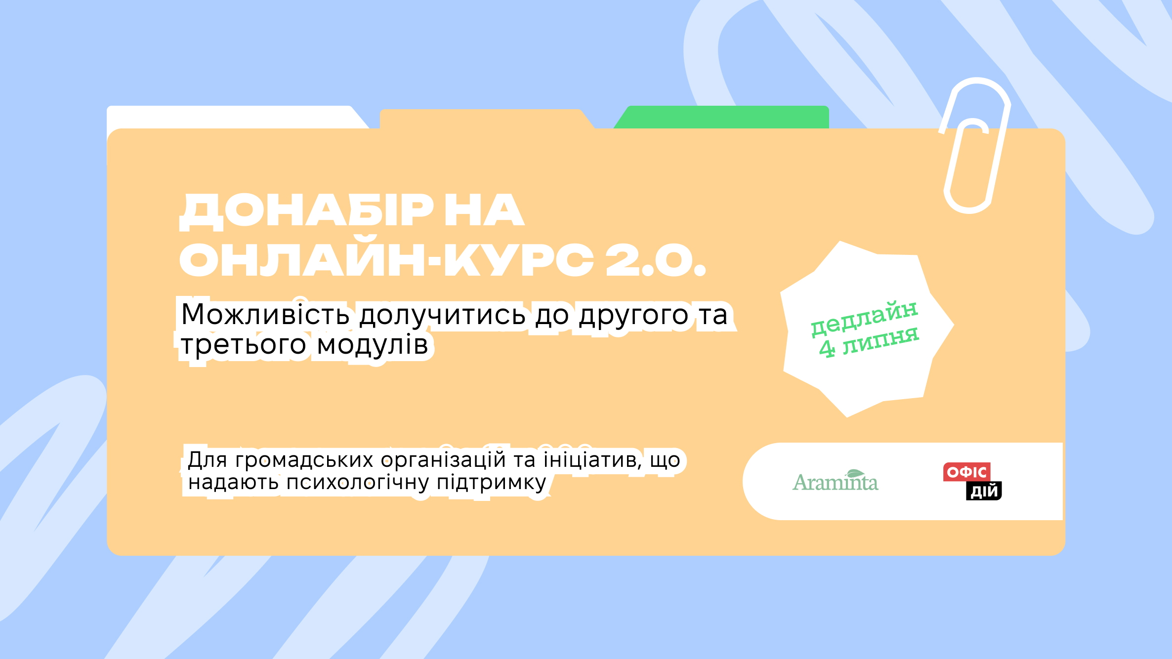 Можливість доєднатись до другого та третього модулів онлайн-курсу «Підтримуємо тих, хто допомагає іншим 2.0.»!